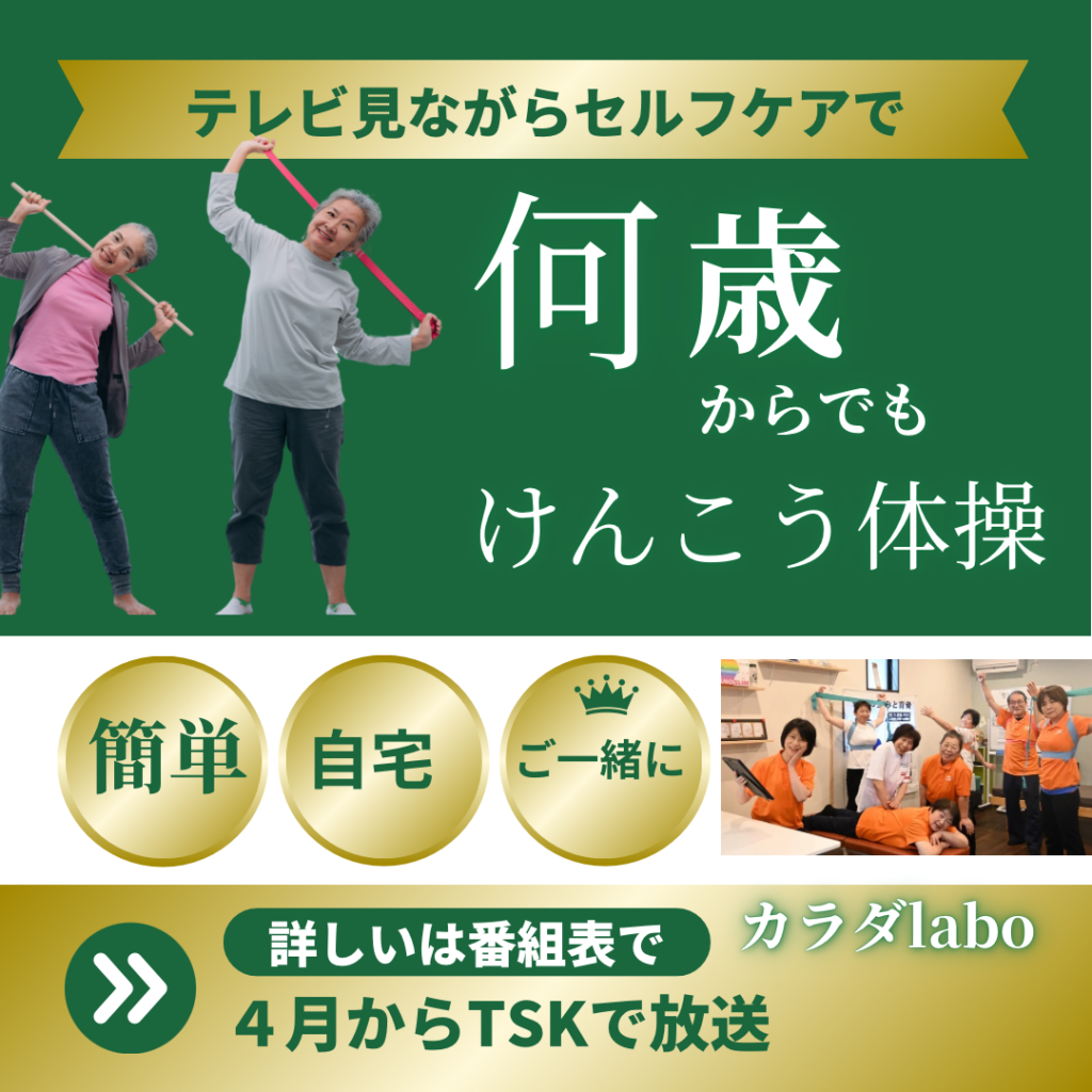 4月からTSKにカラダLABOが登場します! カラダLABO しらかたBASE 2025年3月14日 最終更新日時 : 2025年3月14日 kenkounootaku 何歳からでも「けんこう体操」 お楽しみに!