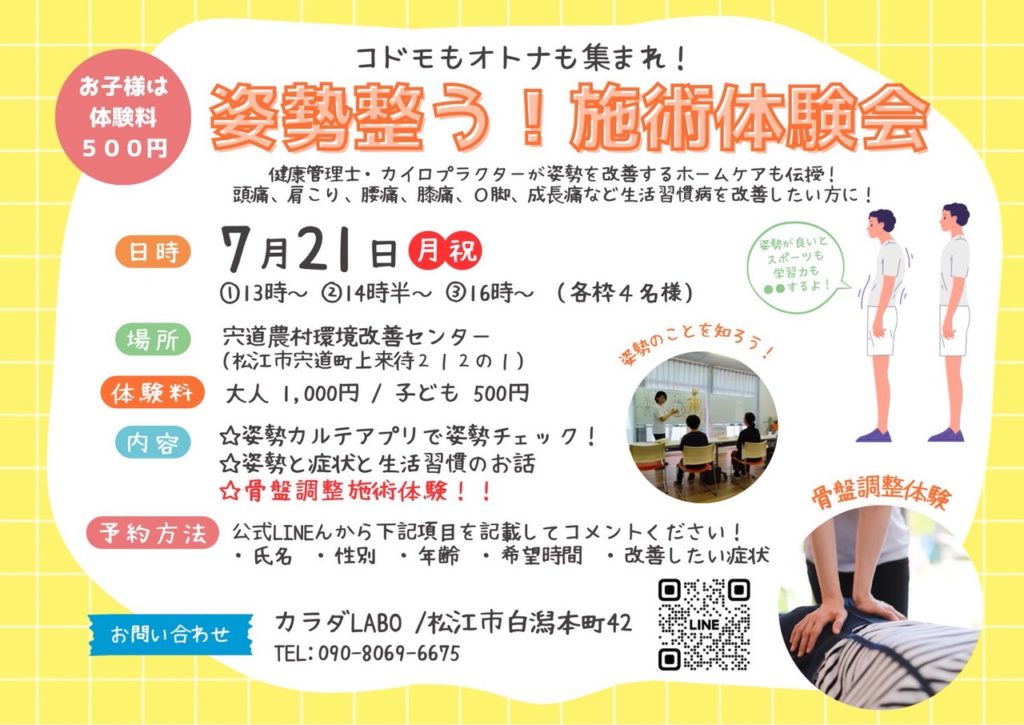 姿勢整う! 施術体験会 宍道農村環境改善センターにて