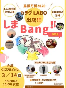 家庭内健康法勉強会 テクノアーク島根にて カラダLABO 2026年2月21日 最終更新日時 : 2026年2月20日 kenkounootaku 良い寝姿勢、姿勢を整える運動、栄養の摂り方などが学べます! 3月15日 テクノアーク島根にて開催します!